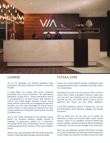 At our U.S. gateways, our Premium Business Class Flysaa.com is South African Airways’ multilingual online