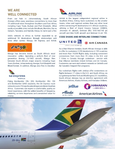 including Cape Town, Durban and Port Elizabeth. Other airline connecting 40 destinations in 9 African countries,