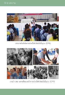 14 ผลงาน บรรยายในหัวข้อการช่วยฟื้นคืนชีพขั้นพื้นฐาน (CPR) แกนน า อสม. แลกเปลี่ยนและฝึกการช่วยฟื้นคืนชีพขั้นพื้นฐาน (CPR)