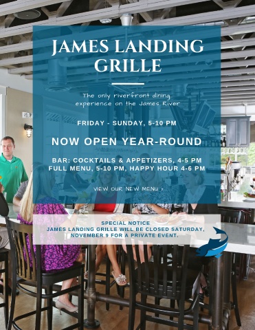 JAMES LANDING GRILLE WILL BE CLOSED SATURDAY,