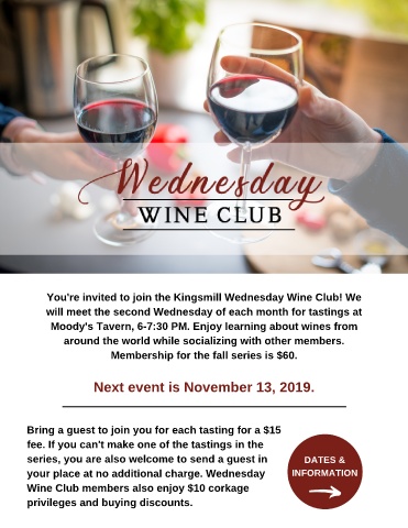 You're invited to join the Kingsmill Wednesday Wine Club! We