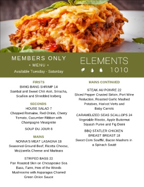 NONNA'S MEAT LASAGNA 18                            Sweet Corn Soufflé, Bacon Mashers in