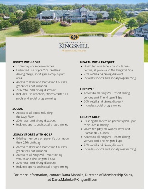 Existing members on parent's plan upon Access to all Kingsmill Resort dining