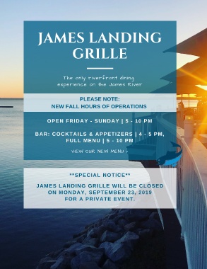 JAMES LANDING GRILLE WILL BE CLOSED