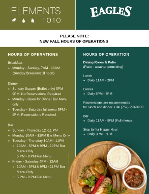 Monday - Sunday, 7AM - 10AM (Patio - weather permitting)