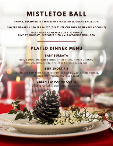 RSVP BY MONDAY, DECEMBER 9 TO KM-RSVP@KINGSMILL.COM