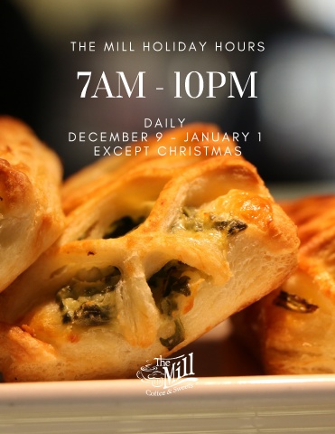 T H E M I L L H O L I D A Y H O U R S 7AM - 10PM D A I L Y D E C E M B E R 9 - J A N U A R Y 1 E X C E P T C H R I S T M A S