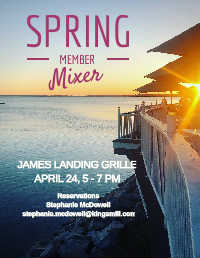 SPRING MEMBER Mixer JAMES LANDING GRILLE APRIL 24, 5 - 7 PM Reservations Stephanie McDowell stephanie.mcdowell@kingsmill.com
