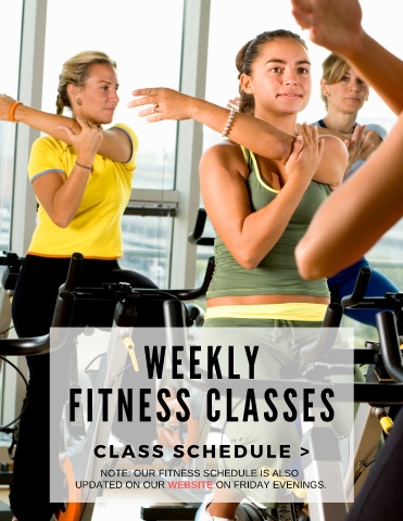 WEEKLY FITNESS CLASSES C L A S S S C H E D U L E > NOTE: OUR FITNESS SCHEDULE IS ALSO UPDATED ON OUR WEBSITE ON FRIDAY EVENINGS.