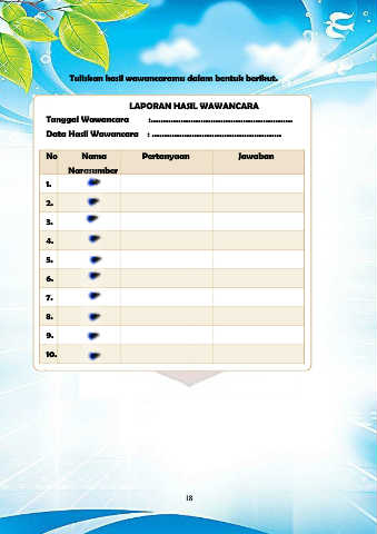 Tuliskan hasil wawancaramu dalam bentuk berikut.