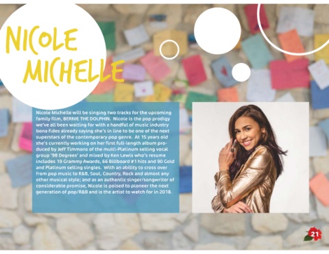 family film, BERNIE THE DOLPHIN. Nicole is the pop prodigy