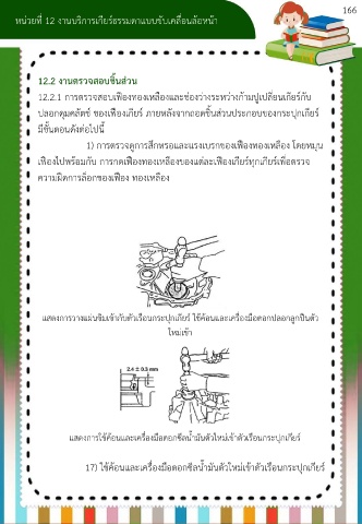 12.2.1 การตรวจสอบเฟืองทองเหลืองและช่องว่างระหว่างก้ามปูเปลี่ยนเกียร์กับ