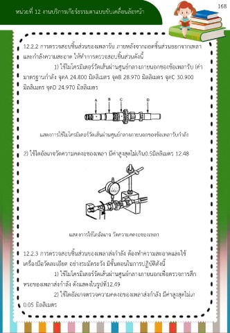 12.2.2 การตรวจสอบชิ้นส่วนของเพลารับ ภายหลังจากถอดชิ้นส่วนออกจากเพลา