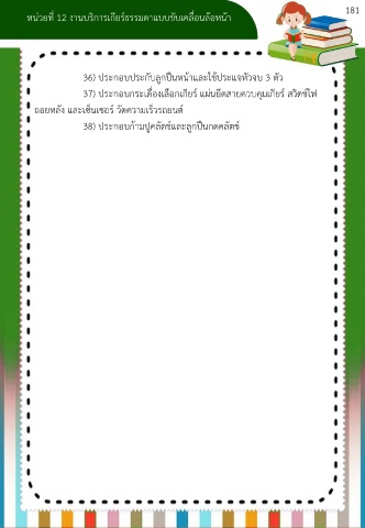181 หน่วยที่ 12 งานบริการเกียร์ธรรมดาแบบขับเคลื่อนล้อหน้า 36) ประกอบประกับลูกปืนหน้าและใช้ประแจหัวจบ 3 ตัว 37) ประกอบกระเดื่องเลือกเกียร์ แผ่นยึดสายควบคุมเกียร์ สวิตช์ไฟ ถอยหลัง และเซ็นเซอร์ วัดความเร็วรถยนต์ 38) ประกอบก้ามปูคลัตช์และลูกปืนกดคลัตช์