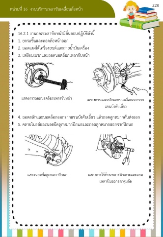 16.2.1 งานถอดเพลาขับหน้ามีขั้นตอนปฏิบัติดังนี้