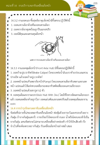 16.3.3 งานถอดดุมล้อหน้า(Front Axle Hub) มีขั้นตอนปฏิบัติดังนี้