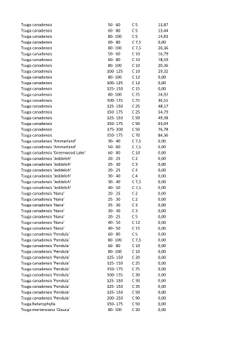 Tsuga canadensis 60- 80 C 7,5 0,00