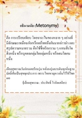 สรุปความหมายรวม คือใช้ชื่อเรียกรวม ๆ แทนสิ่งใด