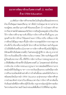 พร้อมของไทยในกำรน ำ STEM Education มำสู่กระบวนกำรจัดกำรศึกษำ