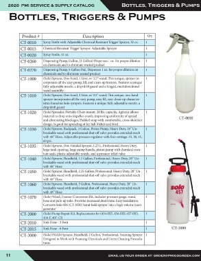 2020 PMI SERVICE & SUPPLY CATALOG Bottles, Triggers & Pumps Bottles, Triggers & Pumps CT-0010 CT-1000 11 EMAIL US YOUR ORDER AT: ORDER@PMIGOGREEN.COM
