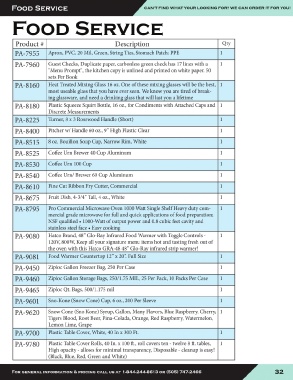 Food Service CAN’T FIND WHAT YOUR LOOKING FOR? WE CAN ORDER IT FOR YOU! Food Service For general information & pricing call us at 1-844-244-8613 or (505) 747-2466 32