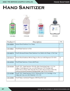 2020 PMI SERVICE & SUPPLY CATALOG Hand Sanitizer Hand Sanitizer CH-0061 CH-0520 CH-0050 CH-0530 37 EMAIL US YOUR ORDER AT: ORDER@PMIGOGREEN.COM