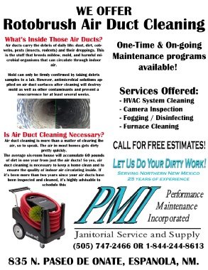 Air ducts carry the debris of daily life: dust, dirt, cob- One-Time & On-going