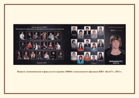 Выпуск экономического факультета (группа 100804) Алексеевского филиала НИУ «БелГУ», 2013 г.