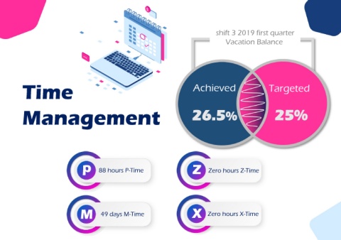 shift 3 2019 first quarter Vacation Balance Time Achieved Targeted Management 26.5% 25% p 88 hours P-Time Z Zero hours Z-Time M 49 days M-Time X Zero hours X-Time