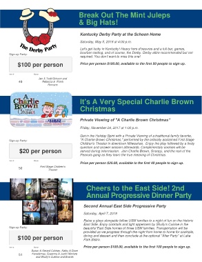 Sign-up Party: bourbon tasting, and of course, the Derby. Derby attire recommended but not