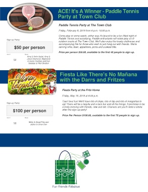 Sign-up Party: Paddle Tennis and socializing. Paddle enthusiasts will rotate play on lit