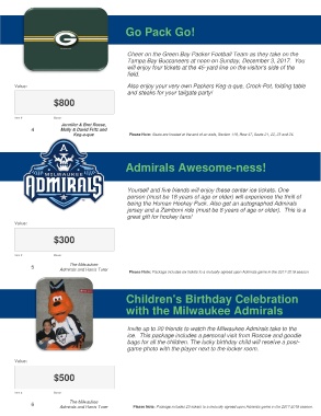 Please Note: Package includes six tickets to a mutually agreed upon Admirals game in the 2017-2018 season.