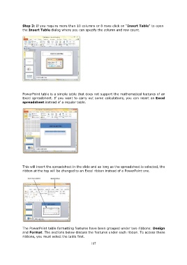 ribbon at the top will be changed to an Excel ribbon instead of a PowerPoint one.