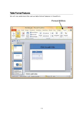 Table Format Features We will now understand the various table format features in PowerPoint. 110