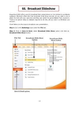 PowerPoint 2010 offers users to broadcast their presentations on the internet to worldwide