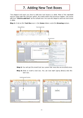 This chapter will teach you how to add new text boxes in a slide. Most of the standard