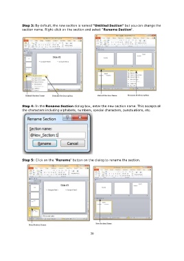 Step 5: Click on the "Rename" button on the dialog to rename the section.