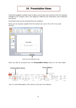 PowerPoint supports multiple views to allow users to gain the maximum from the features