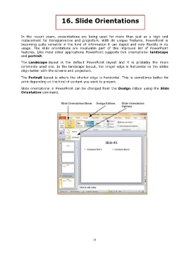 features. Like most other applications PowerPoint supports two orientations: landscape