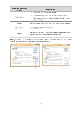 When you check any of the header and footer checkboxes in either tabs, you can see the