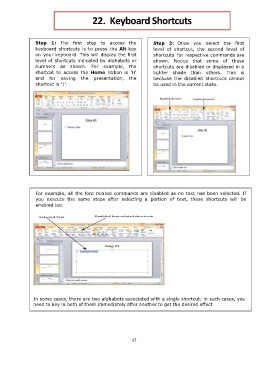 numbers as shown. For example, the shortcuts are disabled or displayed in a