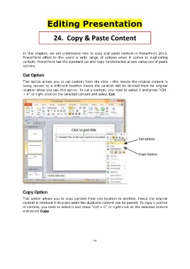 In this chapter, we will understand how to copy and paste content in PowerPoint 2013.