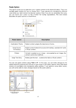 pasted object by pressing the Ctrl key to get access to the paste options. Note that these
