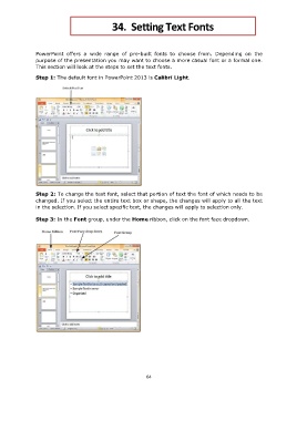 Step 1: The default font in PowerPoint 2013 is Calibri Light.