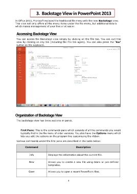 In Office 2013, Microsoft replaced the traditional file menu with the new Backstage view.