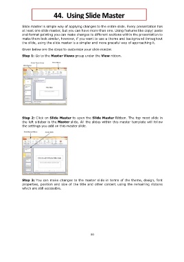 Step 2: Click on Slide Master to open the Slide Master Ribbon. The top most slide in