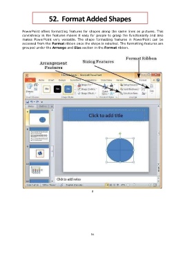 accessed from the Format ribbon once the shape is selected. The formatting features are