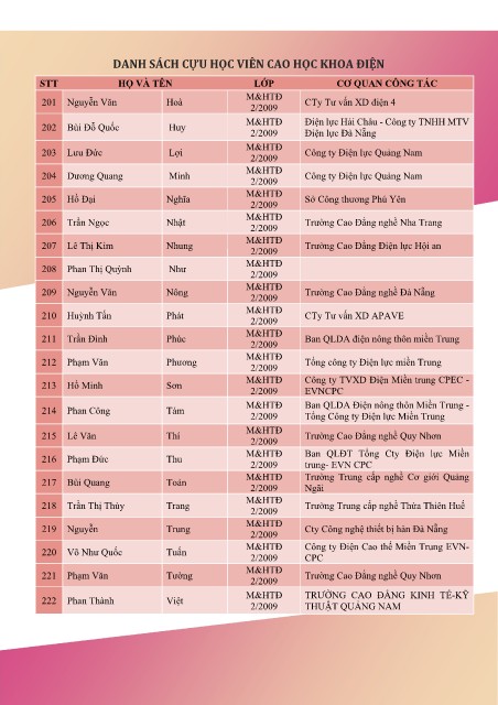 DANH SÁCH CỰU HỌC VIÊN CAO HỌC KHOA ĐIỆN