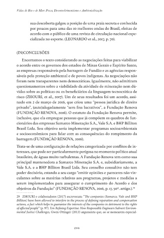29 ZHOURI e colaboradores (2017) escreveram: “The companies (Samarco, Vale and BHP