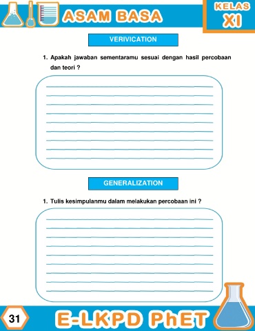VERIVICATION 1. Apakah jawaban sementaramu sesuai dengan hasil percobaan dan teori ? GENERALIZATION 1. Tulis kesimpulanmu dalam melakukan percobaan ini ? 31